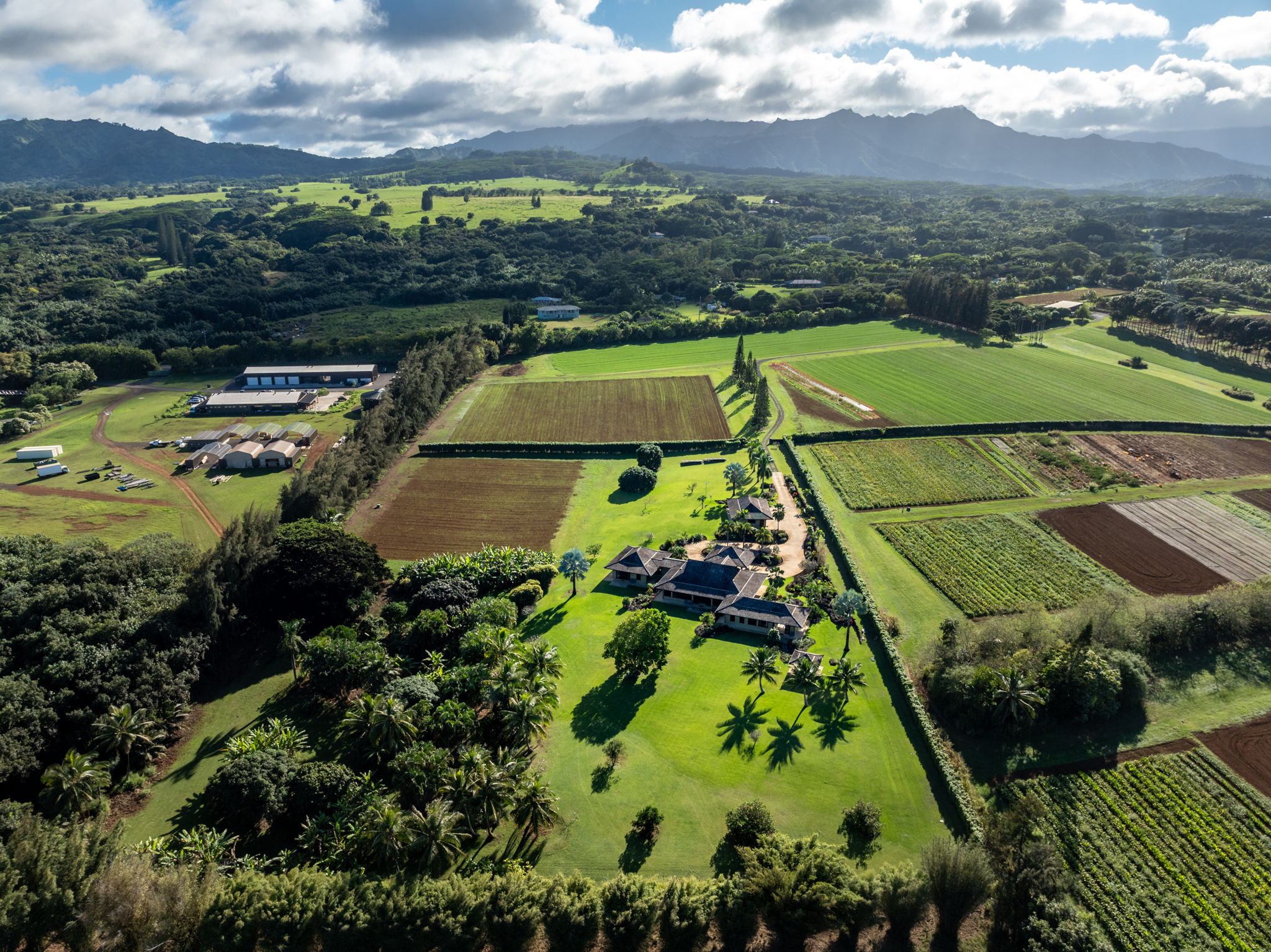 Discover an extraordinary opportunity to own a 44.63-acre property situated on the breathtaking North Shore of the Garden Island of Kaua'i. This stunning gated estate combines the elegance of a custom 4,824 sq. ft. Hawaiian-Japanese style home with the functionality of a thriving organic farm. Ocean, sunset and sunrise views are plentiful from many areas of the property. Just a short walk to one of the most incredible North Shore beaches!