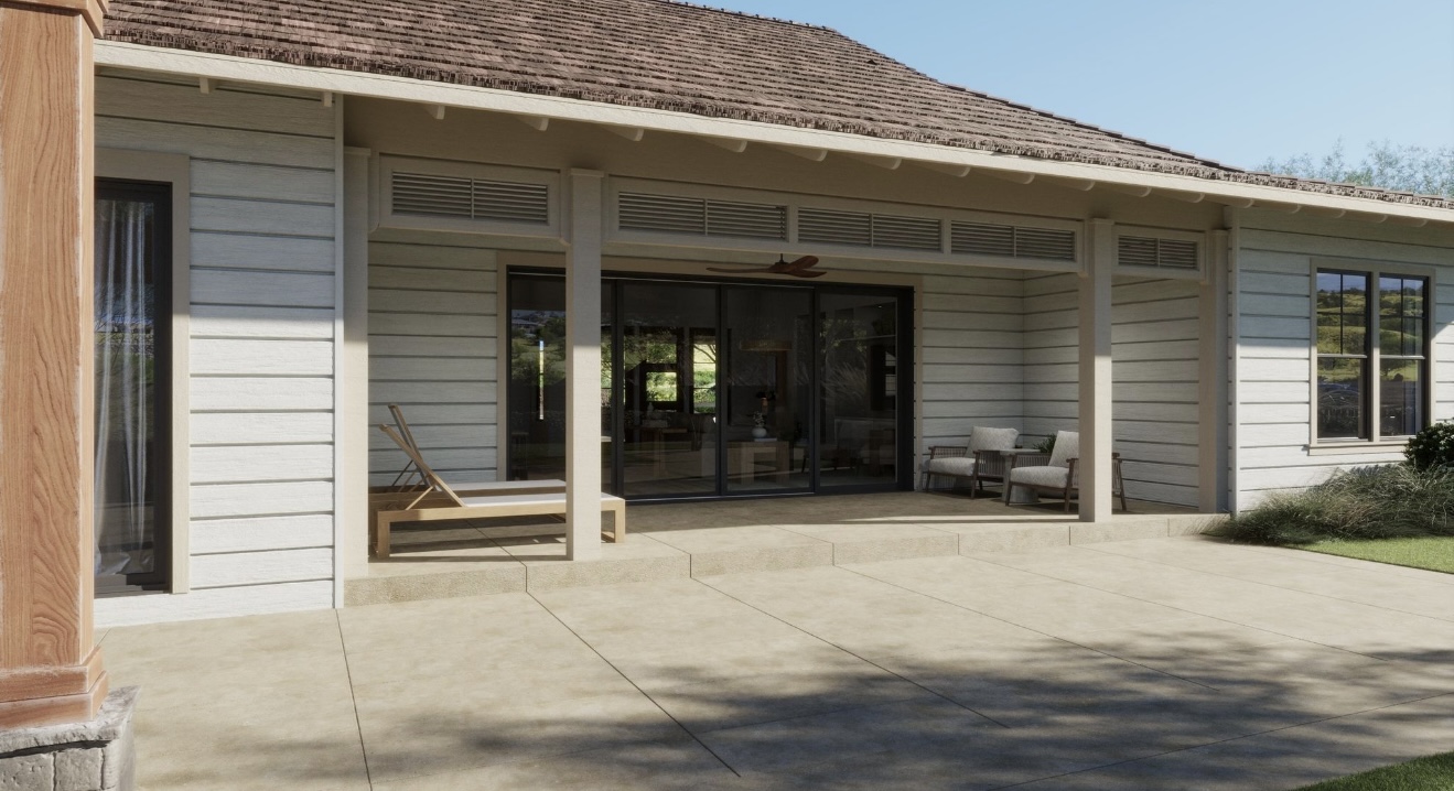 This showcase new home of more than 2040 Sq. ft., blends Hawaiian-inspired architecture with modern comforts. Expansive lanais on both the entry and rear yard areas provide sheltered spaces to take in the many vistas and invite year round outdoor living.